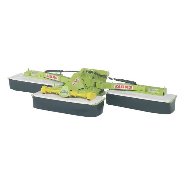 A gazdáknak, akik elsősorban állattartással foglalkoznak, a takarmány betakarításához olyan strapabíró munkagépekre van szükségük, melyek nap mint nap kiváló teljesítményt nyújtanak. A takarmánybetakarítás területén a világ egyik vezetője szolgáltatója a CLAAS, melynek termékei megbízhatóan birkóznak meg a legnehezebb kihívásokkal is, és minőségüknek köszönhetően a folyamatos üzemeltetés során nem hibásodnak – tulajdonságok, melyek kicsiben a BRUDER játékában is megtalálhatók. Mi lehetne kézenfekvőbb, mint egy ilyen lenyűgöző, nagy teljesítményű fűkaszát egy ugyanolyan lenyűgöző játékká alakítani, mely számos valósághű, az eredetivel megegyező funkciójával mindenkit lenyűgöz. Mind a 3 fűkasza lengőrudas felfüggesztésű, és a talaj egyenetlenségeit is képes kezelni. A fűkasza forgó előkészítő tengelyekkel rendelkezik. A hármas fűkaszát a traktoron az elülső és oldalsó használatra oly módon lehet egy berendezés segítségével megosztani, hogy az oldalsó fűkaszákat a szállításhoz fel lehet hajtani. A Claas Jaguaron frontfüggesztéssel, a készlethez tartozó adapter segítségével használják; közúti szállításhoz a fűkaszák előre fordíthatók és felemelhetők. Ezzel a mezőgazdasági géppel a BRUDER ismét bizonyítja termékei magas szintű műszaki kifinomultságát, ami lenyűgözően mutatja be a játszó gyermek számára a nagy testvért jelentő eredeti gép működését.