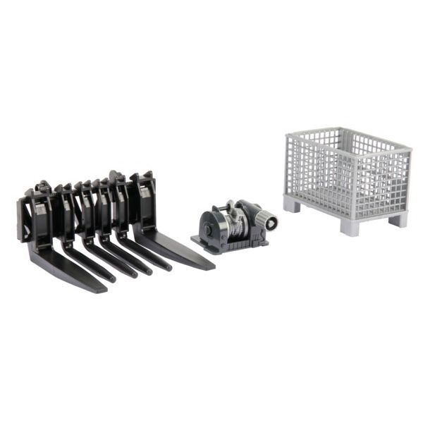 A homlokrakodó tartozékai egy adapterből, egy gitterboxból, egy kötélcsörlőből, valamint négy bála- és két raklapvillából állnak. A szórakozás fokozása érdekében a Profi széria összes traktorja és a Manitou teleszkópos rakodó is felszerelhető homlokrakodó tartozékokkal (nem a csomag része).