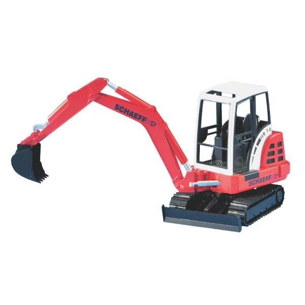 A kanálmozgató gém teljesen működőképes, a kanál levehető, a tolólap pedig állítható. A Schaeff minikotró gémje vízszintesen elfordítható, így valósághű kotró funkció érhető el. Ráadásul a Schaeff minikotró fülkéje 360°-ban forgatható, a gumiheveder csendes haladást tesz lehetővé. A játék fokozása érdekében a Schaeff minikotró a következő tartozékkal szerelhető fel, cikkszáma: 02408, amely hidraulikus kalapácsból, talajfúróból és négy közlekedési jelzőbójából áll (nem tartozék).